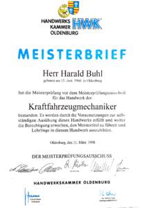 Meisterbrief Harald Buhl